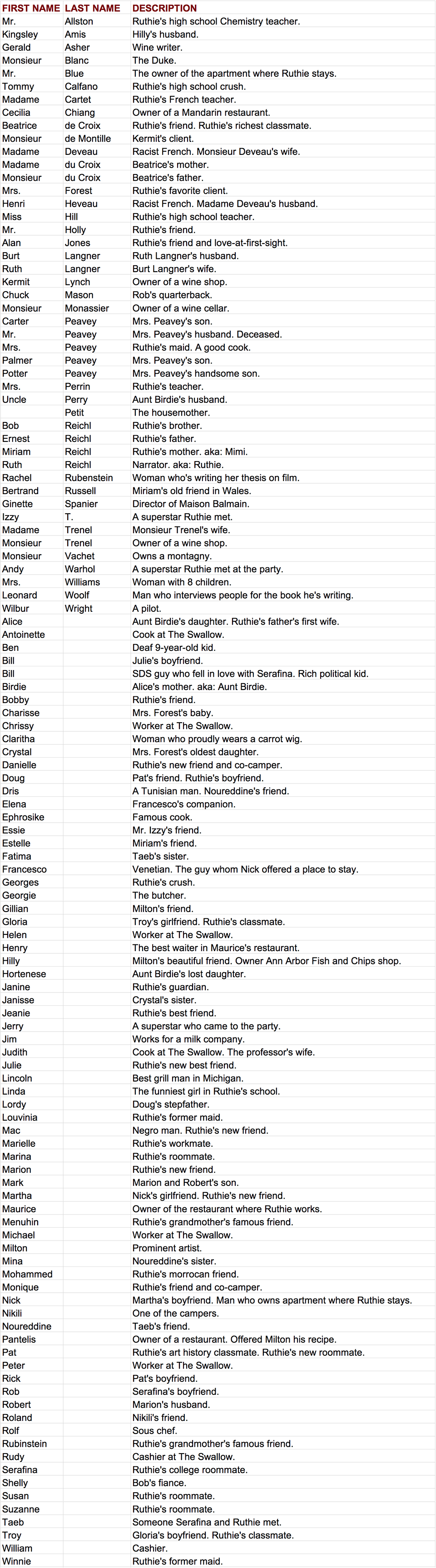 Characters - Alphabetical